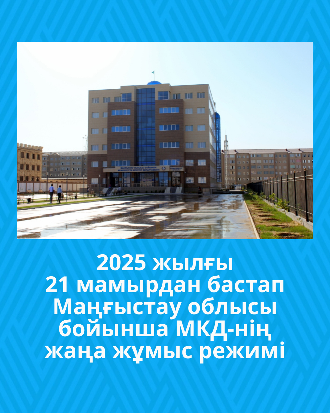 2025 жылғы 21 мамырдан бастап Маңғыстау облысы бойынша Мемлекеттік кірістер департаментінің жаңа жұмыс режимі 28.05.2025