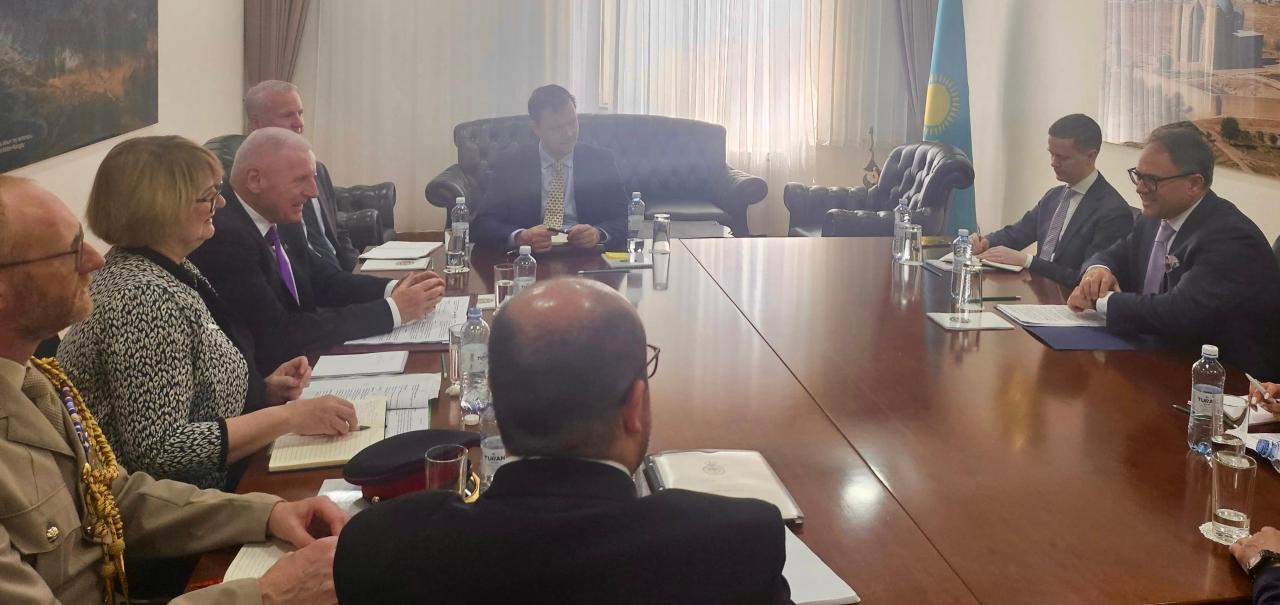 Астана, 2025 жылғы 16 мамыр – Қазақстан Республикасы Сыртқы істер министрінің орынбасары Роман Василенко Ұлыбритания және Солтүстік Ирландия Біріккен Корольдігінің Қорғаныс министрінің орынбасары Лорд Вернон Кокермен кездесу өткізді.Тараптар қауіпсіздік, қорғаныс және бітімгершілік салаларындағы өзара іс-қимылды қоса алғанда, қазақ-британ ынтымақтастықтың негізгі бағыттарын талқылады.Р.Василенко Қазақстан Қарулы күштері өкілдерінің Біріккен Ұлттар Ұйымының бітімгершілік миссияларына қатысу тәжірибесі және осы бағыттағы қызметтің тиімділігін арттыру мақсатында халықаралық серіктестермен бірлесіп әскери қызметшілерді даярлау жұмысы туралы ақпарат берді.Министрдің орынбасары Қазақстанның БҰҰ аясында бейбітшілік пен тұрақтылықты нығайтуға одан әрі үлес қосуға мүдделі екенін растады.Кездесу аясында көпжақты мәселелер мен өңірлік және жаһандық күн тәртібіндегі өзекті тақырыптар бойынша пікір алмасу өтті.Тараптар екіжақты және көпжақты серіктестіктің бүкіл спектрі бойынша конструктивті диалогты жалғастыруға өзара дайын екенін растады.2014 жылдан бастап Қазақстан Республикасы Қарулы күштері БҰҰ-ның бітімгершілік операцияларына қатысып келеді. Қазақстанның 80 азаматы әскери бақылаушы және штаб офицері ретінде миссияларға қатысқан. 700-ге жуық әскери қызметші БҰҰ-ның әртүрлі елдердегі арнайы операцияларына жұмылдырылған. Қазіргі уақытта 158 қазақстандық Африка мен Таяу Шығыстағы бітімгершілік күштер құрамында қызмет етуде.Ақпарат көзі : https://www.gov.kz/memleket/entities/mfa-london/press/news/details/997848?lang=kk