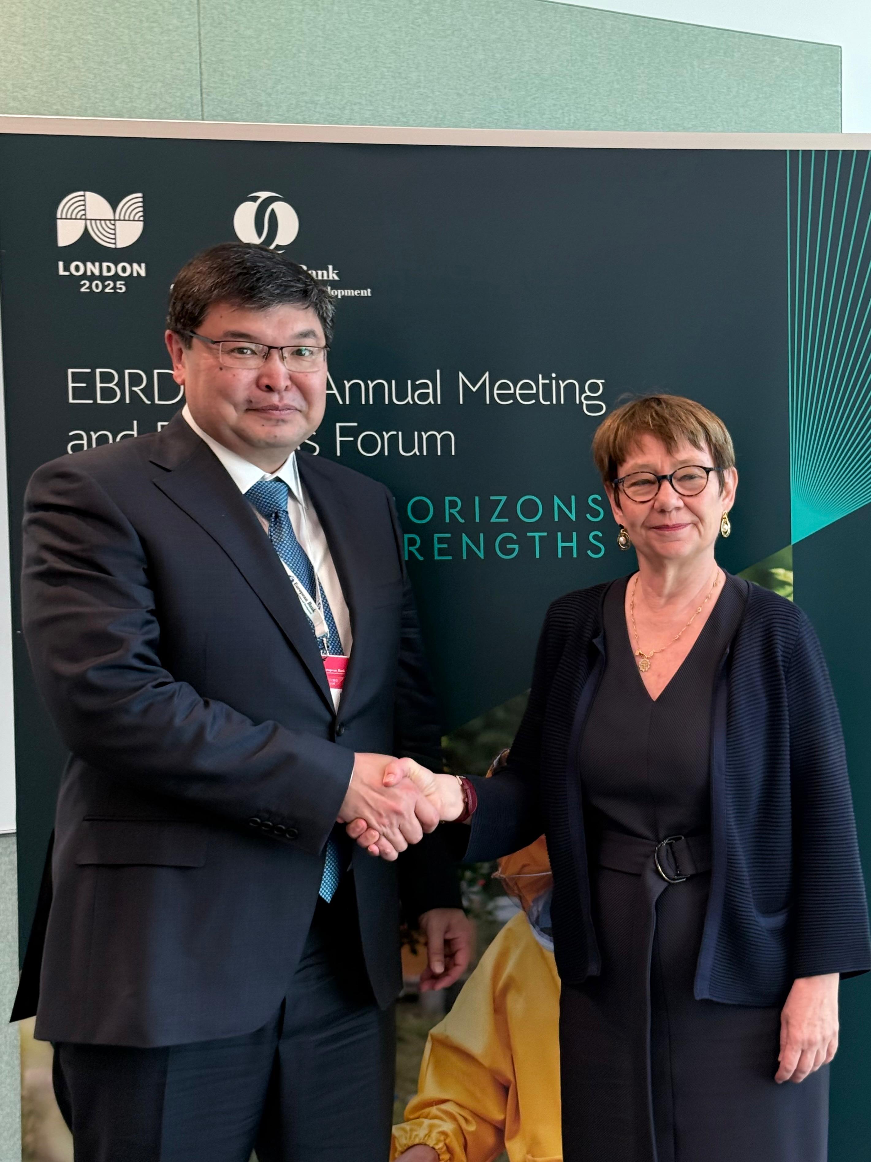 ҚР Қаржы министрі, Қазақстанның атынан Еуропалық қайта құру және даму банкінде (ЕҚДБ) басқарушы болып отырған Мәди Такиев бастаған еліміздің делегациясы 13-15 мамыр күндері Лондонда өткен ЕҚДБ Басқарушылар кеңесінің жыл сайынғы отырысы мен бизнес-форумына қатысты.Дәстүрге айналған жиында Басқарушылар кеңесі ЕҚДБ-ның 2024 жылғы қызметіне байланысты, сондай-ақ Африка елдеріне «көмек алушы мемлекеттер» мәртебесін беру бойынша жылдық есептерді мақұлдап бекітті. Сонымен бірге ЕҚДБ-ның 2026-2030 жылдарға арналған қаржыландыру бағдарламасы бойынша стратегиялық құжаты қабылданды.Бұған қоса Қазақстан Республикасының Қаржы министрі Мәди Такиев бірқатар екіжақты кездесу өткізді.Атап айтқанда, ЕҚДБ президенті Одиль Рено-Бассомен болған кездесуде тараптар аталған банктің Қазақстандағы қызметінің перспективалары мен ынтымақтастықты одан әрі нығайтудың басымдыққа ие бағыттарын талқылады.Лондон қор биржасы басшысының орынбасары Чарли Уокермен келіссөздер барысында еурооблигациялар шығару шеңберінде қаржылық ынтымақтастықты дамыту мәселелері қаралды. Standart Chartered UK банкінің бас атқарушы директоры Саиф Маликпен кездесуде қаржылық әріптестікті, оның ішінде банктің еліміздегі жұмысын дамыту жолдары пысықталды. Бұдан бөлек Мысырдың (Египеттің) жоспарлау, экономика және халықаралық ынтымақтастық министрі Рания Әл-Машатпен келіссөздер кезінде климаттық бастамаларды қаржыландыру тетіктері және сауда-экономикалық байланыстарды кеңейту тетіктері қаралды.Кездесудің қорытындысы бойынша екі жақ бірлескен жобаларды іске асыруға және өзара тиімді әріптестікті одан әрі дамытуға мүдделі екендерін жеткізді.Ақпарат көзі : https://www.gov.kz/memleket/entities/mfa-london/press/news/details/996854?lang=kk
