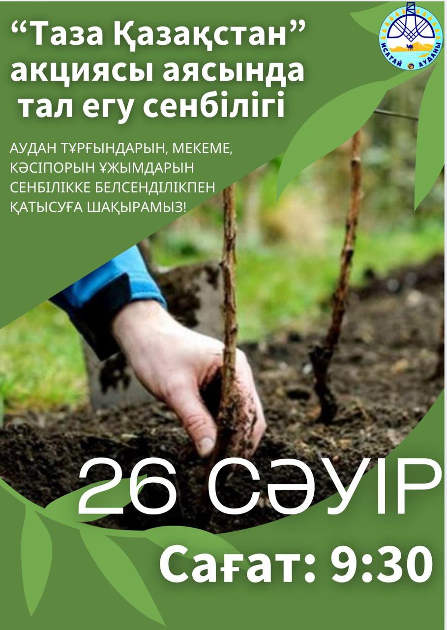 Таза Қазақстан акциясы аясында тал егу сенбілігіне шақырамыз! 18.05.2025