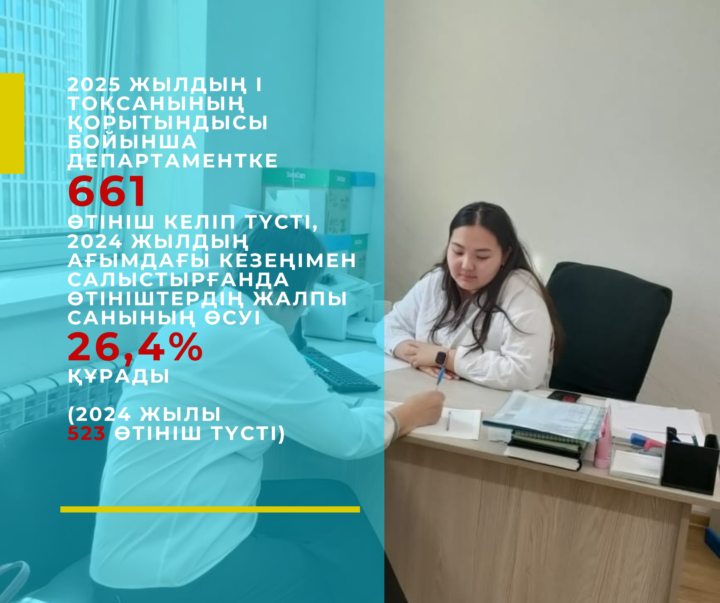 2025 жылдың І тоқсанының қорытындысы бойынша Департаментке 661 өтініш келіп түсті, 2024 жылдың ағымдағы кезеңімен салыстырғанда өтініштердің жалпы санының өсуі 26,4% құрады (2024 жылы 523 өтініш түсті). Әкімшілік құқық бұзушылық бойынша жалпы сомасы 9 525 720 теңгеге 43 хаттама жасалды (2024 жылдың І тоқсанында жалпы сомасы 3 424 330 теңгеге 35 хаттама жасалды). Сондай-ақ, 2025 жылдың І тоқсанында 6 597 мемлекеттік қызмет көрсетілді, қызмет көрсетудің 60,8% - ға ұлғаюы байқалады (2024 жылдың І тоқсанында 4 103 қызмет көрсетілді).Шағымдардың жалпы санының үздіксіз өсуі медициналық ұйымдар деңгейінде пациенттерді қолдау және ішкі аудит қызметінің жұмысы тиімсіз екенін, ал халықтың көрсетілетін қызметтердің сапасына қанағаттану деңгейі жыл сайын төмендеп келе жатқанын көрсетеді. Медициналық көмек көрсету сапасын жақсарту үшін Департамент Астана қаласы әкімдігінің базасында Қоғамдық денсаулық сақтау басқармасының, елорданың медициналық ұйымдарының бірінші басшыларының қатысуымен кеңес өткізді. Кеңес шеңберінде Департамент 2025 жылғы 1 тоқсандағы өтініштердің жалпы санының өсуі, сондай-ақ пациенттерді қолдау қызметі мен медициналық ұйымдардың ішкі аудиті жұмысының тиімділігі; медициналық ұйымдар деңгейінде тәуелсіз сараптама комиссиясын өткізу тәртібі мәселелерін; медициналық және фармацевтикалық қызметті бақылау саласындағы әкімшілік іс жүргізу; халықтың медициналық қызметтер көрсету сапасына қанағаттануы; дәрілік заттарды таңбалау; GPP және мемлекеттік қызметтер көрсету мәселелерін күн тәртібіне шығарды. Департамент басшысының м.а. Г. Габбасова келіп түскен өтініштер үшін Бірінші басшылардың дербес жауапкершілігіне назар аударды, сондай-ақ пациенттермен жұмыс кезінде этикалық нормаларды қатаң сақтау бойынша ұйымдардың медицина қызметкерлерімен профилактикалық жұмыс жүргізу қажеттігін атап өтті.Сондай-ақ, Департамент денсаулық сақтау саласында мемлекеттік қызметтер көрсету, тиісті дәріханалық практика GPP енгізу және өтініш беру мәселелері бойынша Ашық есік күндерін, ZOOM-кеңестер мен тікелей эфирлер өткізеді.Ақпарат көзі : https://www.gov.kz/memleket/entities/dkmfk-astana/press/news/details/985494?lang=kk
