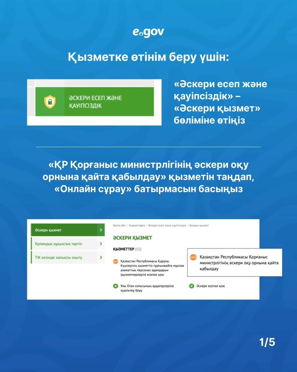 Әскери оқу орындарының бұрынғы студенттері оқу орнына қайта қабылдау үшін eGov.kz порталында өтінім бере алады. 18.05.2025