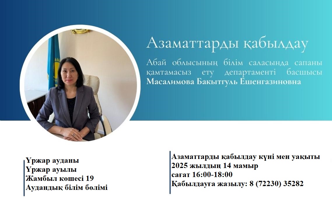 Үржар ауданы азаматтарын қабылдау мерзімі 18.05.2025