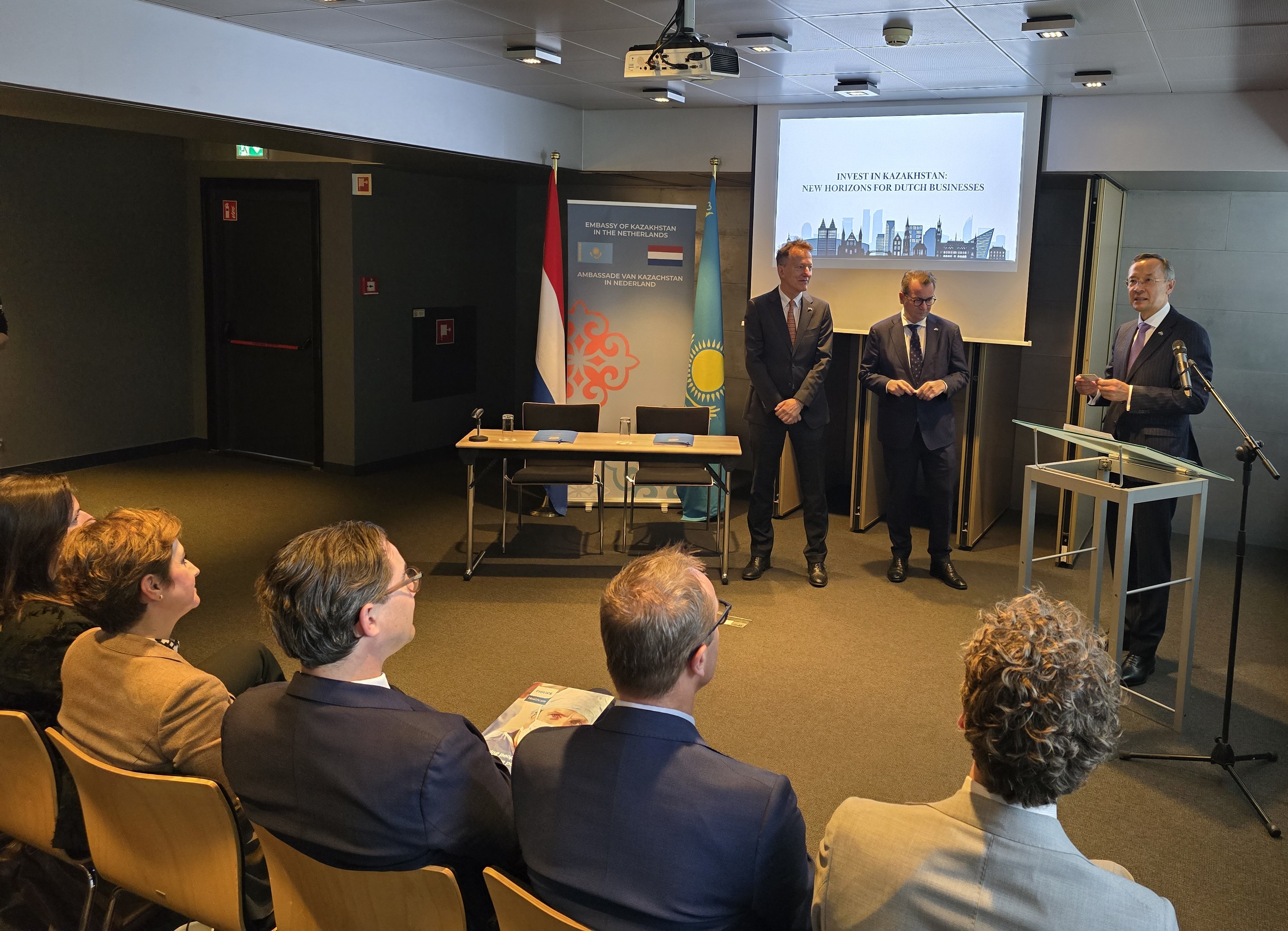 Гаага, 2025 жылғы 9 қазан – Гаага қаласында «Қазақстанға инвестициялар: нидерландтық бизнес үшін жаңа көкжиектер» тақырыбында іскерлік форум өтті. Іс-шараны Нидерланд Корольдігіндегі Қазақстан Республикасының Елшілігі ұйымдастырды. Форумның мақсаты – Президент Қасым-Жомарт Тоқаевтың «Жасанды интеллект дәуіріндегі Қазақстан: өзекті мәселелер және оны түбегейлі цифрлық өзгерістер арқылы шешу» атты Жолдауының негізгі қағидаларымен кең аудиторияны таныстыру болды. Іс-шара мемлекеттік құрылымдар, бизнес қауымдастықтар мен Нидерланд компаниялары өкілдерімен сындарлы диалог пен өзара пікір алмасудың жарқын үлгісіне айналды. Қазақстан тарапынан жасалған таныстырылымдарда инвестициялық саясаттағы соңғы өзгерістер мен кәсіпкерлікті мемлекеттік қолдауды кеңейту шаралары аясында нидерландтық инвесторлар үшін туындайтын жаңа мүмкіндіктер жан-жақты қамтылды.Кездесуді ашқан Нидерландтағы Қазақстанның Елшісі Қайрат Әбдірахманов өз сөзінде Мемлекет басшысының басшылығымен Қазақстанның тұрақты экономикалық өсімге қол жеткізіп, экономиканы әртараптандыру және цифрландыру бағытын жүйелі түрде жүзеге асырып келе жатқанын атап өтті. Өз сөзінде Елші Мемлекет басшысының Жолдауының негізгі бағыттарымен қатысушыларды таныстырып, бұл құжаттың жаңа технологиялық дәуір жағдайында елдің стратегиялық дамуын айқындайтынын ерекше атап өтті. Нидерланд Кәсіпкерлікті дамыту агенттігінің (RVO) бас директордың орынбасары Газиза Бахмани Қазақстанның ыңғайлы және ашық іскерлік орта қалыптастыру жөніндегі күш-жігерін жоғары бағалап, тұрақты даму мен жаңа реформалар Нидерланд бизнесі үшін қосымша мүмкіндіктер ашатынына сенім білдірді.«Қазақстан Нидерланд үшін маңызды әріптес болып қала береді – бұл тек жаңа экономикалық мүмкіндіктермен ғана емес, сондай-ақ өзара сенім мен ортақ келешекке деген көзқараспен де айқындалады. Жақында біз сыни шикізат материалдары бойынша сауда миссиясын ұйымдастырдық, ал бұған дейін порт инфрақұрылымын дамыту және логистика саласында табысты жоба жүзеге асырылған болатын. Бұл бастамалар біздің ынтымақтастығымыздың жоғары деңгейін және оның болашақта одан әрі нығая түсетініне деген сенімді дәлелдейді», – деді Г. Бахмани.Форум барысында мазмұнды баяндамалар жасалды. «KazakhInvest» ұлттық компаниясының Еуропа жөніндегі шетелдің өкілі Ұлбосын Сарыбаева шетелдік инвесторларға арналған жаңа құралдар мен ынталандыру шараларын таныстырды. Ал Еуропадағы сыни шикізат материалдары жөніндегі арнайы өкіл Сайран Байжаханов Қазақстанның сирек жер металдары және тұрақты жер қойнауын пайдалану саласындағы әлеуеті туралы баяндады. Өз кезегінде Нидерланд Сыртқы істер министрлігі мен RVO агенттігінің өкілдері – Йоб ван Тиль және Калина Вризе жуырда Қазақстанға ұйымдастырылған нидерландтық бизнес-миссияның нәтижелерімен бөлісіп, сапардың табысты өткенін және нидерланд компанияларының қазақстандық әріптестермен ынтымақтастыққа деген қызығушылығының арта түскенін атап өтті.Жоғары технологиялық бизнестің жаңа бағыттарын әлемге әйгілі Royal Philips компаниясы ұсынды. Ал жақында өзінің 100 жылдық мерейтойын атап өткен Royal Rijk Zwaan компаниясы Қазақстандағы жұмыс тәжірибесімен бөлісті. Компанияның тұқым шаруашылығында нидерландтық технологияларды енгізуі өнімнің өнімділігін арттыруға, сапасын жақсартуға жә
