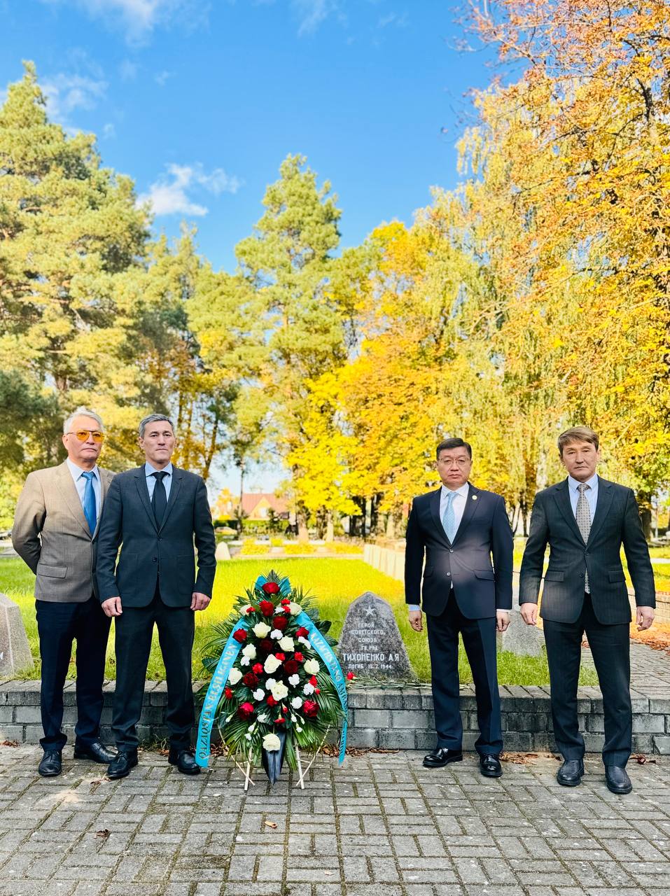 Алитус, 2025 жылғы 10 қазан – Литвадағы Қазақстан Елшілігінің өкілдері, Тимур Оразаев жетекшілігімен, Ұлы Отан соғыстың батыры және Қазақстан тумасы Алексей Яковлевич Тихоненконың рухына тағзым етіп, оның Алитус қаласындағы жерленген жеріне гүл шоғын қойды.А. Тихоненко Ұлы Отан соғысы майдандарында ерлік пен жанқиярлықтың үлгісін көрсетті. Ол фашизмге қарсы ортақ Жеңіске айтарлықтай үлес қосып, Отанын және болашақ ұрпақтың еркіндігін қорғады. Тихоненконың ерлігі соғыстың ең ауыр жылдарында бейбітшілікті қорғауға шыққан жүздеген мың қазақстандықтардың батырлығы мен жанқиярлығын бейнелейді.Дипломатиялық өкілдіктің басшысы Тимур Оразаев Қазақстанның тарихи жадыны сақтау мен бейбітшілік жолында жанын пида еткендерді құрметтеуге үлкен мән беретінін атап өтті. «А. Тихоненко сияқты тұлғалардың есімі – жай ғана тарих емес. Бұл – ұрпақтар арасындағы тірі байланыс әрі халықтарымызды біріктіретін достықтың маңызды бөлігі», – деді ол. Ақпарат көзі : https://www.gov.kz/memleket/entities/mfa-vilnius/press/news/details/1084573?lang=kk