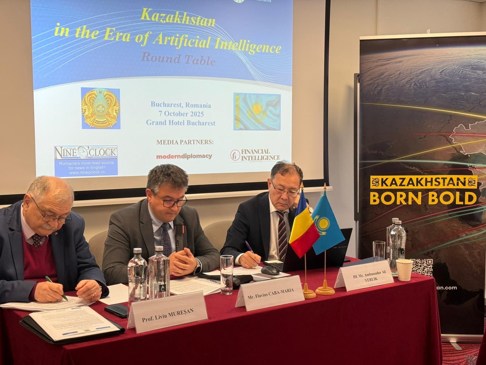 2025 жылғы 7 қазан, Бухарест - Қазақстан Республикасының Румыниядағы Елшілігі Таяу Шығыс саяси-экономикалық институтымен (MEPEI) және «EuroDefense Romania» сараптамалық орталығымен бірлесіп дөңгелек үстел өткізді.Іс-шара Қазақстан Республикасының Президенті Қ.Тоқаевтың «Жасанды интеллект дәуіріндегі Қазақстан: өзекті мәселелер және оны түбегейлі цифрлық өзгерістер арқылы шешу» атты Қазақстан халқына Жолдауын талқылауға орайластырылды.Кездесу барысында Елші цифрлық трансформацияға және жасанды интеллектті дамытуға бағытталған Қазақстанның мемлекеттік саясатының негізгі бағыттарымен таныстырды. Ол цифрландырудың еліміздің тұрақты даму стратегиясында шешуші рөл атқаратынын, мемлекеттік басқаруды, азаматтардың өмір сүру сапасын жақсартуға, адами капиталды нығайтуға ықпал ететінін баса айтты.Елші халықаралық ынтымақтастық пен цифрлық технологиялар саласындағы тәжірибе алмасудың маңыздылығын атап өтіп, Қазақстанның осы саладағы әріптестік қарым-қатынасты кеңейтуге және бірлескен жобаларды жүзеге асыруға дайын екенін жеткізді. Қазақстандық дипломат өз сөзінде Мемлекет басшысының БҰҰ Бас Ассамблеясының 80-сессиясында сөйлеген сөзінің негізгі хабарламаларына да тоқталды. Халықаралық ынтымақтастықты нығайтуға және цифрлық технологиялар мен инновациялар саласындағы жаһандық бастамаларға белсенді қатысуға бағытталған Қазақстанның сыртқы саяси басымдықтарына ерекше назар аударылды.Талқылауға дипломатиялық корпустың, ғылыми ортаның және сараптамалық орталықтардың өкілдері қатысты. Румыниялық сарапшылар ұсынылған бастамаларға үлкен қызығушылық танытып, тәжірибелерімен және идеяларымен бөлісті және цифрлық технология, киберқауіпсіздік және тұрақты даму саласындағы серіктестікті кеңейту әлеуетін атап өтті.Дөңгелек үстел Қазақстанның тұрақты және бәсекеге қабілетті болашағын құрудағы жасанды интеллекттің рөлін талқылау үшін маңызды алаң болды және цифрлық трансформация мен инновациялық ынтымақтастық жағдайында Қазақстан мен Румыния арасындағы әріптестікті нығайтуға ықпал етті.Ақпарат көзі : https://www.gov.kz/memleket/entities/mfa-bucharest/press/news/details/1082484?lang=kk