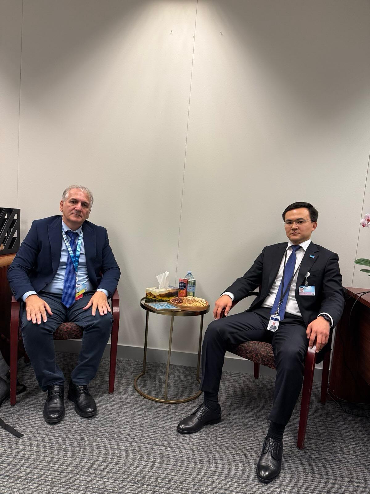 Монреаль қаласы, 2025 жылғы 30 қыркүйек. ИКАО Ассамблеясының 42-сессиясы шеңберінде Халықаралық азаматтық авиация ұйымы (ИКАО) жанындағы Қазақстан Республикасының Тұрақты өкілі Тимур Тлегенов мырза Әзербайжан Республикасының Азаматтық авиация мемлекеттік агенттігі төрағасының міндетін атқарушы Бахрұз Мәліков мырзамен кездесті.Әзербайжан тарапы ИКАО жанындағы Қазақстанның Тұрақты өкілдігіне сыпайылық сапарымен келді.Тараптар азаматтық авиация саласындағы екіжақты ынтымақтастықтың өзекті мәселелерін, оның ішінде ұшу географиясын кеңейту және Қазақстан мен Әзербайжан арасындағы тікелей әуе рейстерінің санын арттыру перспективаларын талқылады.Кездесу достық және өзара сенім жағдайында өтті. Ақпарат көзі : https://www.gov.kz/memleket/entities/kazakhstanicao/press/news/details/1082496?lang=kk