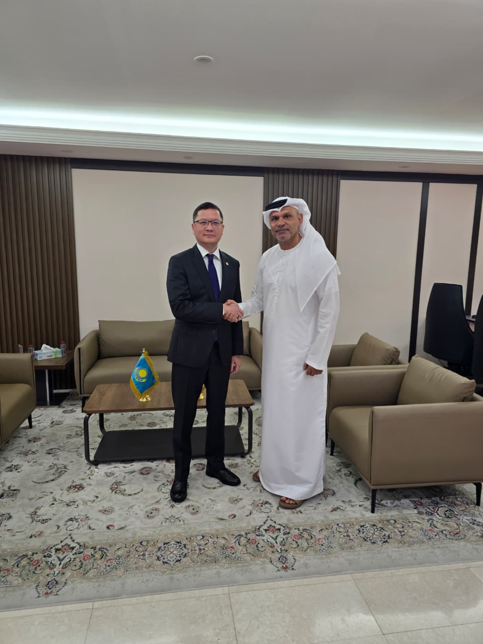Абу Даби, 2025 жылғы 2 қазан – Қазақстанның Біріккен Араб Әмірліктеріндегі Елшісі Рауан Жұмабек БАӘ Қорғаныс министрінің қорғаныс саясаты және байланыс жөніндегі орынбасары Али Абдулла Мұхаммед әл-Ахмадпен кездесу өткізді.Сұхбаттасу барысында БАӘ Қорғаныс істері жөніндегі Мемлекеттік министрі Мұхаммед бен Мубарак әл-Мазруидің Қазақстанға жақында жасаған сапарының нәтижелі болғанына назар аударылды.Қазақстан дипломаты аталған сапардың екі ел арасындағы қорғаныс және әскери-техникалық ынтымақтастықты нығайтуға тың серпін беретінін атап өтті.Сонымен қатар тараптар қол жеткізілген уағдаластықтарды сапалы жүзеге асыру үшін бірлесіп күш-жігер жұмсауға келісті.Ақпарат көзі : https://www.gov.kz/memleket/entities/mfa-abudhabi/press/news/details/1080461?lang=kk