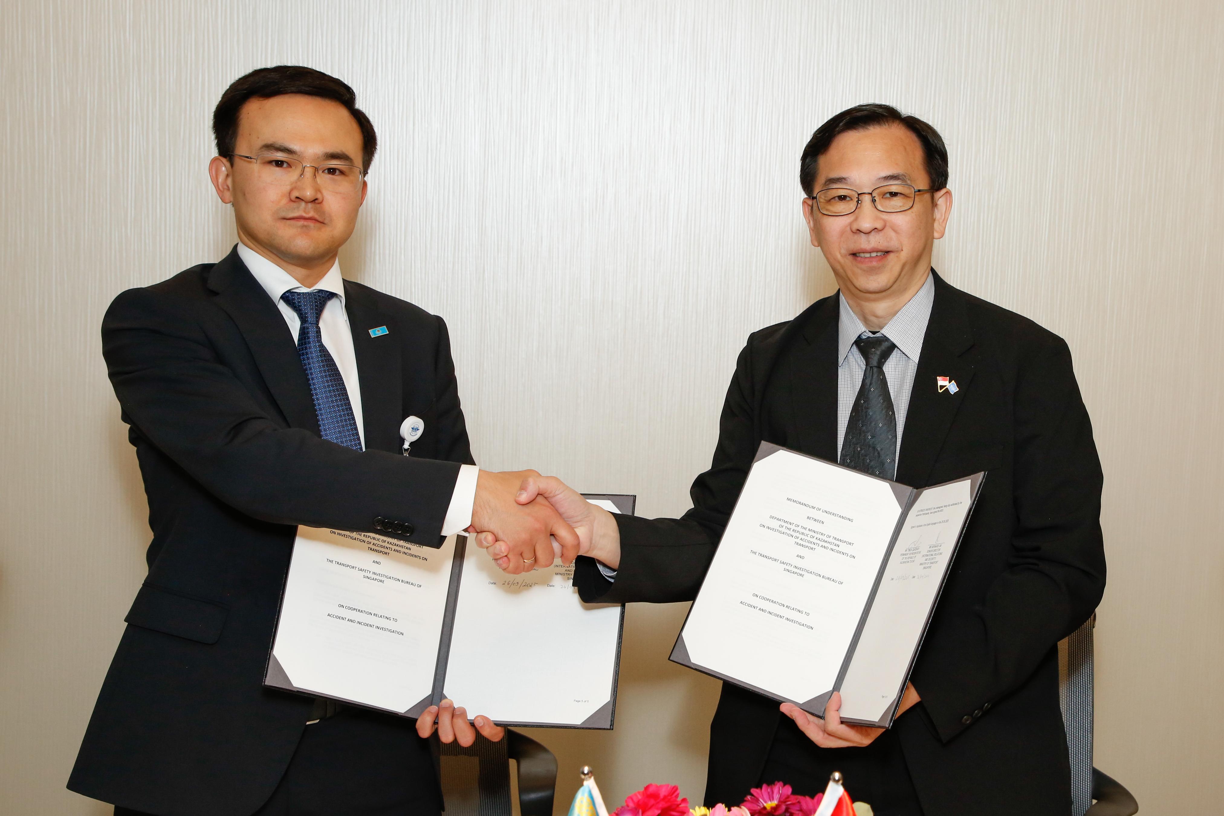 2025 жылғы 26 қыркүйек, Монреаль. Халықаралық азаматтық авиация ұйымы (ИКАО) Ассамблеясының 42-ші сессиясы аясында Қазақстан Республикасының Көлік министрлігі мен Сингапур Республикасының Көлік оқиғалары бойынша бюросы арасында Көлік оқиғалары мен инциденттерін тергеу мәселелеріндегі өзара түсіністік пен ынтымақтастық туралы Меморандумға қол қойды.Құжатқа ИКАО жанындағы Қазақстан Республикасының Тұрақты өкілі Тимур Тлегенов мырза мен Сингапур Республикасы Көлік министрлігі Халықаралық қатынастар және қауіпсіздік департаментінің аға директоры Бернард Лим мырза қол қойды.Меморандум әуе, теміржол мен теңіз көліктеріндегі оқиғалары мен инциденттерін тергеу мәселелері бойынша ынтымақтастықты, тәжірибе және ақпарат алмасуды, сондай-ақ персоналды даярлауды қарастырады.Қол қою рәсімі барысында Қазақстан Республикасы мен Сингапур Республикасының делегация басшылары – ҚР Көлік министрлігі Азаматтық авиация комитетінің төрағасы Салтанат Томпиева ханым және СР Көлік жөніндегі тұрақты хатшысы Лау Пит Менг мырза кездесіп, азаматтық авиация саласындағы екіжақты ынтымақтастықтың өзекті мәселелерін талқылады. ҚР-ның ИКАО жанындағы Тұрақты өкілдігі Ақпарат көзі : https://www.gov.kz/memleket/entities/kazakhstanicao/press/news/details/1078976?lang=kk