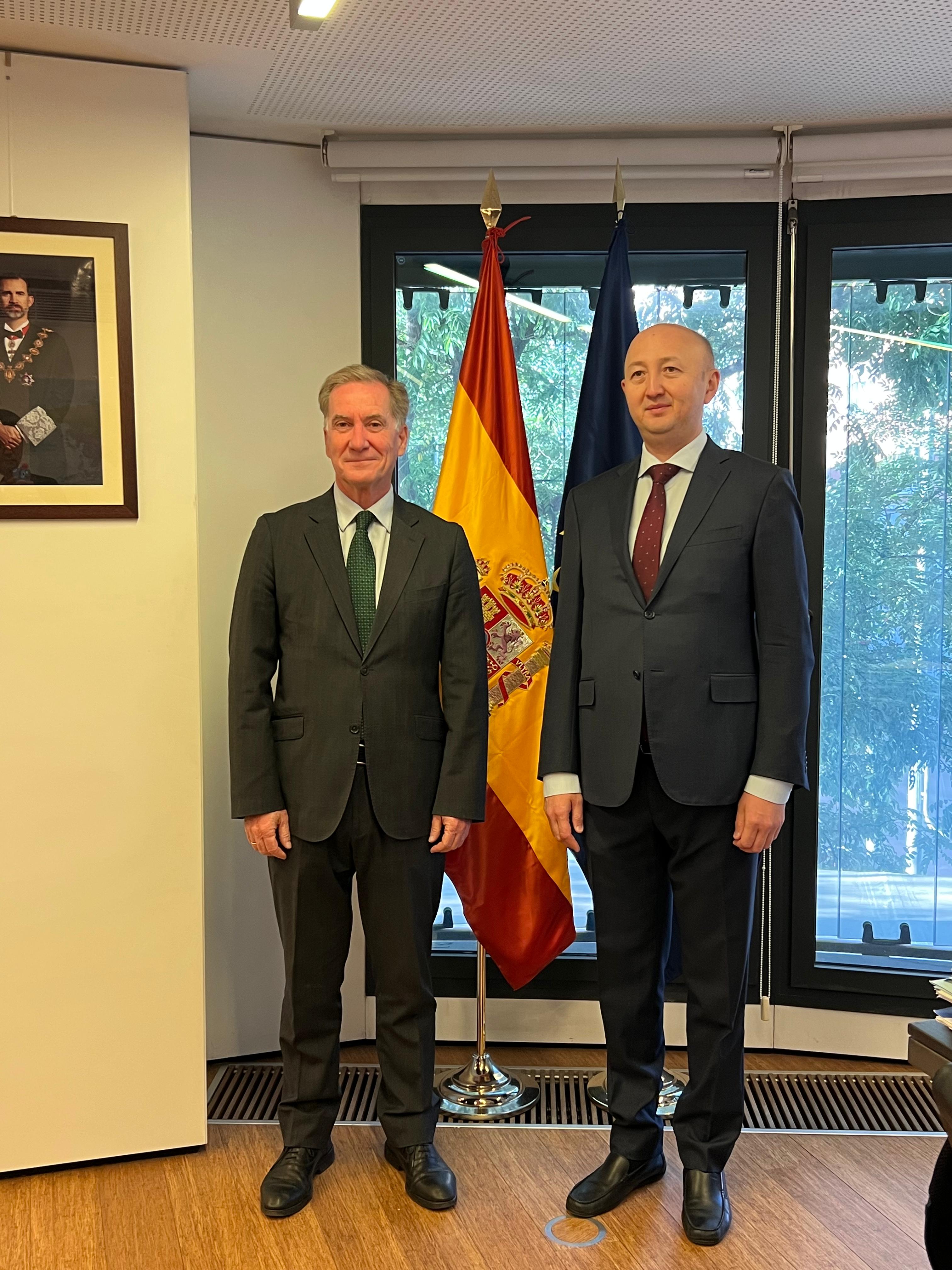 Мадрид, 2025 ж. 25 қыркүйек – Қазақстан Республикасының Испания Корольдігіндегі Елшісі Данат Мұсаев Испания Бас прокуратурасының халықаралық қылмыстық ынтымақтастық жөніндегі прокуроры Франсиско Хименес-Вильярехо Фернандеспен кездесу өткізді.Кездесу барысында халықаралық-құқықтық ынтымақтастықты дамыту мәселелері, оның ішінде екі мемлекеттің құзыретті органдары арасындағы өзара іс-қимыл және құқықтық көмек саласында күш-жігерді одан әрі үйлестірудің ықтимал бағыттары талқыланды.Жұмыс байланыстарын тұрақты қолдаудың, соның ішінде өзара сапарларды жүзеге асырудың маңыздылығы атап өтілді.Тараптар өзекті бағыттар бойынша ынтымақтастықты нығайтуға дайын екендіктерін растады.Ақпарат көзі : https://www.gov.kz/memleket/entities/mfa-madrid/press/news/details/1077246?lang=kk