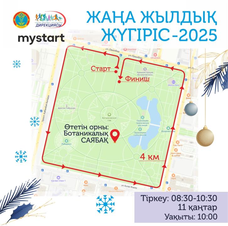 Астанада 11 қаңтар күні жаппай жүгіру іс-шарасы өтеді, деп хабарлайды елорда әкімдігінің ресми сайты.Өтетін орны – Ботаникалық саябақ. Жарыстың жалпы қашықтығы – 4 км. Жарысқа қатысуға ниет білдірушілерді тіркеу сол күні күні сағат 08:30-10:00-ге дейін өтеді.Жарыстың басталуы сағат 10:00-де. Финиш сызығында қатысушылардың бәріне естелік медальдар беріледі.Жаппай жүгіруге кез келген адам қатыса алады.Ақпарат көзі : https://www.gov.kz/memleket/entities/astana/press/news/details/914418
