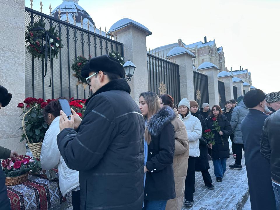 Астаналықтар Қазақстандағы Әзербайжан елшілігіне гүл шоқтарын қойып жатыр 28.12.2024