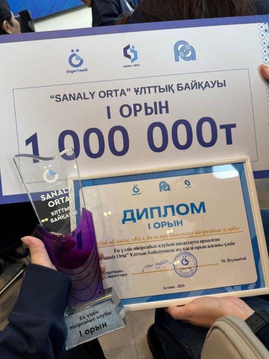 Астанада «Ozgerteam» ҚҚ ұйымдастыруымен «Sanaly Orta» ұлттық байқауы өтті. Іс-шараның мақсаты пікірсайыс технологияларын насихаттау және Қазақстандағы мектептегі дебат клубтарының дамуына қолдау көрсету.Абай облысының атынан қатысқан Ы.Алтынсарин атындағы №37 мектеп-гимназиясының «Кел, балалар, оқылық!» дебат клубы бірінші орынды жеңіп алды. Жеңімпаздар 1 миллион теңге ақшалай сыйлық пен еліміздің ең үздік пікірсайыс клубы атағына ие болды. Үйірме жетекшісі – Бинұр Ахатқызы, төрағасы – Еркежан Тұрлыбек.Клубтың пікірсайыс қозғалысын жандандыруға және қала мен ауыл мектептері арасындағы теңсіздікті жоюға бағытталған «Sapa» жобасы ұсынылды. Жобаның өзектілігі мен инновациялық идеялары қазылар алқасының жоғары бағасына ие болды.Ақпарат көзі : https://www.gov.kz/memleket/entities/abay/press/news/details/903453