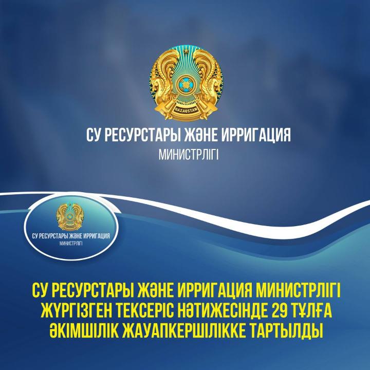 Су ресурстары және ирригация министрлігі жүргізген тексеріс нәтижесінде 29 тұлға әкімшілік жауапкершілікке тартылды 09.12.2024