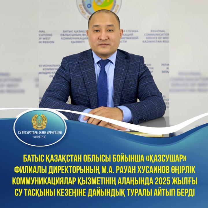 Батыс Қазақстан облысы бойынша «Қазсушар» филиалы директорының м.а. Рауан Хусаинов Өңірлік коммуникациялар қызметінің алаңында 2025 жылғы су тасқыны кезеңіне дайындық туралы айтып берді 03.12.2024