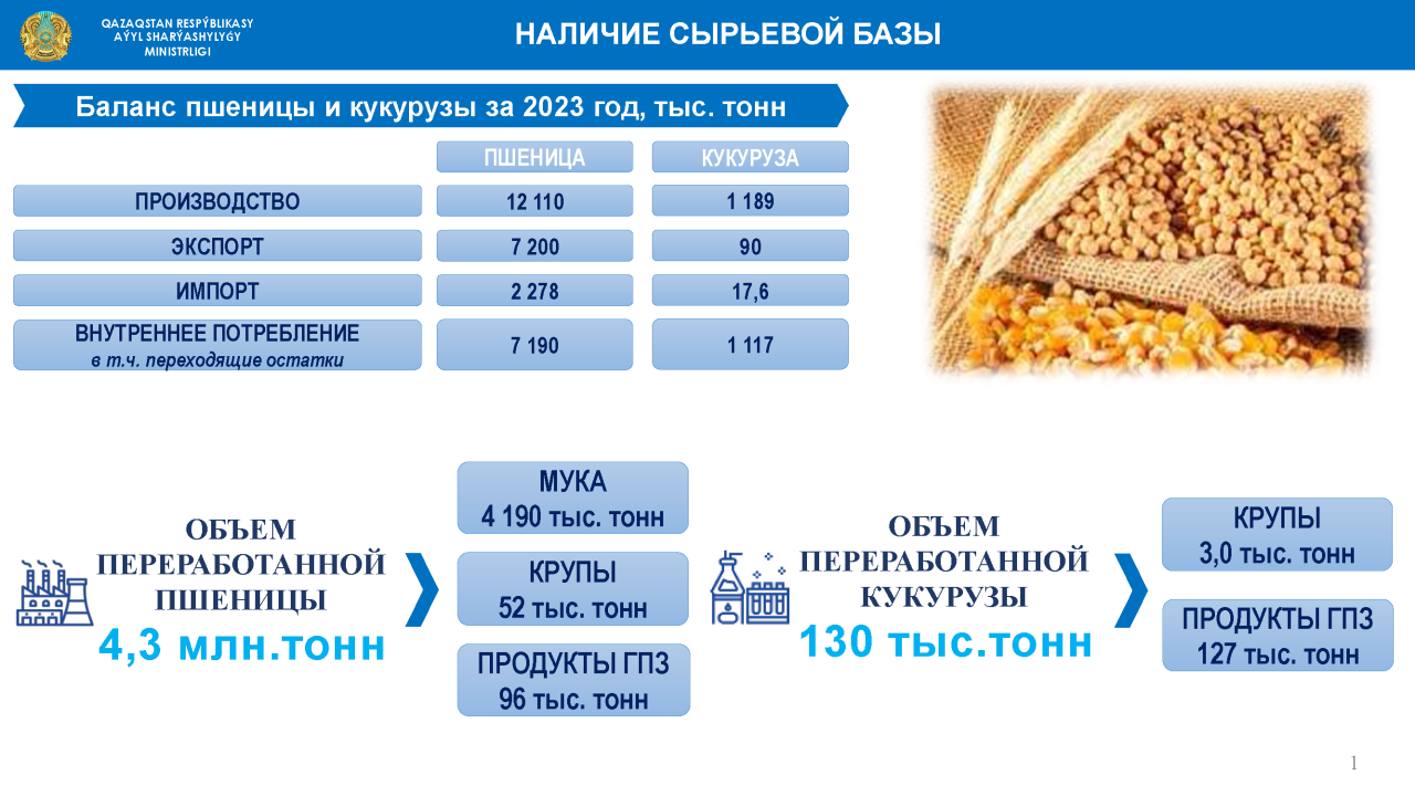 Үкіметтегі кеңесте вице-премьер Серік Жұманғарин Қазақстандағы астықты терең өңдеуді дамыту және осы саладағы жобаларды іске асыратын инвесторлардың жағдайын тыңдады. Бүгінгі таңда Қазақстанда астықты терең өңдеу бойынша үш зауыт жұмыс істейді. Іске асыру сатысында тағы 4 жоба бар. Жетісудағы «Жаркент крахмал зауыты» ЖШС жылдық қуаты 150 мың тонна жүгеріні қайта өңдейді; Алматы облысындағы «Азия-Агрофуд» ЖШС (60 мың тонна жүгері, крахмал, крахмал сірнесі және крахмал шәрбатын) және СҚО-дағы «Биооперейшн» ЖШС-250 мың тонна бидай (крахмал, глютен, биоэтанол, ауыл шаруашылығы жануарларына арналған жем) өндіреді. «2023 жылы Қазақстанда барлығы 111 мың тонна крахмал өнімдері өндірілді. Бұл 27,7 мың тонна жүгері крахмалы, 2022 жылы бұл көрсеткіш 15,5 мың тоннаны құрады; 21,1 мың тонна бидай крахмалы, 2022 жылғы көрсеткіш 19,7 мың тонна болды; 51,8 мың тонна крахмал сірнесі, 2022 жылғы көрсеткіш – 57,3 мың тонна; 10,1 мың тонна глютен, 2022 жылы бұл көрсеткіш 10,7 мың тоннаны құрады», — деп мәлімдеді ауыл шаруашылығы вице-министрі Азат Сұлтанов.2023 жылы астықтан өңделген өнім экспортының көлемі едәуір өсті: жүгері крахмалы – 11,5 мың тонна (2022 жылы 9,3 мың тонна), бидай крахмалы – 15,7 мың тонна (2022 жылы 10,6 мың тонна), глютен – 6,9 мың тонна ( 2022 жылы 7,7 мың тонна), крахмал сірнесі – 19,4 мың тонна (2022 жылы 16 мың тонна). Өткен жылғы импорт 265 тонна бидай крахмалын, 4,2 мың тонна жүгері крахмалын, 8,1 мың тонна крахмал сірнесін, 76,1 тонна глютенді құрады.2028 жылға дейін астықты терең өңдеу бойынша тағы үш жобаны іске асыру жоспарлануда. Қазақстандық «Qostanai Grain Industry» ЖШС Қостанай облысында жылдық қуаты 415 мың тонна астықты терең өңдеу жобасын бастады. Кәсіпорын лизин, глютен, биоэтанол, көмірқышқыл газын шығаратын болады. Пайдалануға беру мерзімі – 2027 жыл, 650 жұмыс орнын ашу жоспарлануда. Түркістан облысында «Қазкрахмал» ЖШС крахмал өнімдерін өндіру үшін жүгеріні өңдеуді жоспарлауда. Қайта өңдеу қуаты – жылына 100-150 мың тонна. Пайдалануға беру мерзімі – 2026 жыл. 500 жұмыс орнын ашу көзделуде. Түркиялық Tiryaki Agro компаниясы Катарлық Hassad Food компаниясымен бірлесіп Астанада қуаты жылына 240 мың тонна астықты терең өңдеу бойынша жобаны бастады. Крахмал, глютен, глюкоза-фруктоза шәрбаты түріндегі соңғы өнімдерді әлемдік нарықтарға экспорттау жоспарлануда. Пайдалануға беру мерзімі – 2026 жыл. 250 жұмыс орнын ашу көзделіп отыр. Қазіргі сәтте жалпы қуаты жылына 2 млн тоннадан асатын бидай мен жүгеріні терең өңдеу бойынша тағы төрт инвестициялық жоба бойынша келіссөздер жүргізіліп, пысықталып жатқаны айтылды.Вице-министр Азат Сұлтановтың айтуынша, Қазақстанда өндірілетін астық көлемі барлық қолданыстағы және жаңа қуаттарды жүктеу үшін жеткілікті.Мемлекет тарапынан астықты терең қайта өңдеу жөніндегі жобаларға, яғни технологиялық күрделілігі жоғары заманауи кәсіпорындар, ауқымды инвестициялық қолдау көрсетілуде. Жұмыс істеп тұрған өндірістерді салу және кеңейту кезіндегі инвестициялық субсидиялар, негізгі және айналым қаражаттарына кредит беру кезінде пайыздық мөлшерлемені арзандату, салықтық преференциялар қарастырылған.Серік Жұманғарин астықты терең өңдеу бойынша жобаларды іске асыратын кәсіпорындардың басшыларын тыңдап, мемлекет тарапынан барлық қажетті қолдау көрсетілетінін атап өтті. Жобаның әрбір кезеңін уақтылы іске асырудың маңызын ескере отырып, вице-премьер ай сайын жоба жет