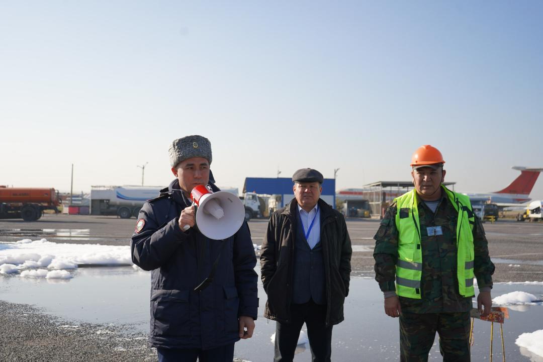 Шымкент қаласының әуежайында әуе кемесіндегі өртті сөндіру бойынша өрт-тактикалық оқу-жаттығу өтті.Өрт-тактикалық оқу-жаттығудың тактикалық мақсатына сәйкес «Алматы-Шымкент» бағыты бойынша ұшқан «АН-24» ұшағының апаттық қонуы салдарынан өрт орын алды. Әуе кемесінің бортында 48 жолаушы және 4 экипаж мүшесі болды. Шасси тағанының істен шығуы, қозғалтқыштың және оң жақ жанармай багының бұзылуы салдарынан жанармай төгіліп, өрт шықты. Әуежайдың ұшуларды іздестіру мен апатты-құтқаруды қамтамасыз ету қызметінің қызметкерлері қаланың өрт сөндірушілерімен және құтқарушыларымен бірлесіп әуе кемесіндегі өртті сөндіру, экипаж бен жолаушыларды құтқару жұмыстарын жүргізді.Оқу-жаттығудың мақсаты қызметкерлердің төтенше жағдай кезінде дағдыларын жаттықтыру, сондай-ақ әуежайдың бөлімшелері мен қалалық қызметтерінің өзара бірлесіп қызмет атқару іс-қимылдарын машықтау болды. Оқу-жаттығудың соңында талдау жүргізіліп, қорытынды жасалды. Ақпарат көзі : https://www.gov.kz/memleket/entities/emer/press/news/details/884089