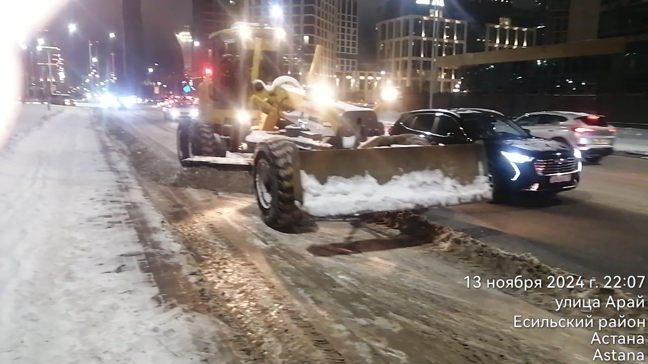 Астанадан бір түнде 2,3 мыңға жуық жүк көлігімен қар шығарылды 16.11.2024