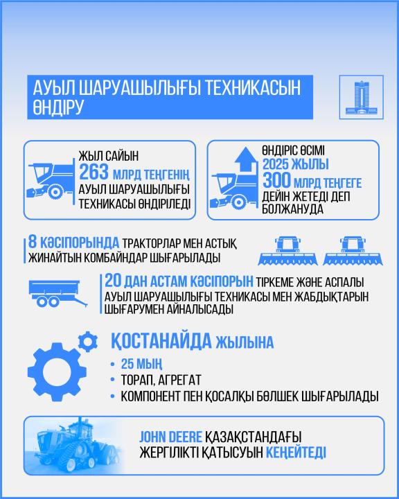 Қазақстан АӨК өнімдері экспортын ұлғайтуда және ауыл шаруашылығы техникасы өндірісін арттыруды жоспарлап отыр 16.11.2024