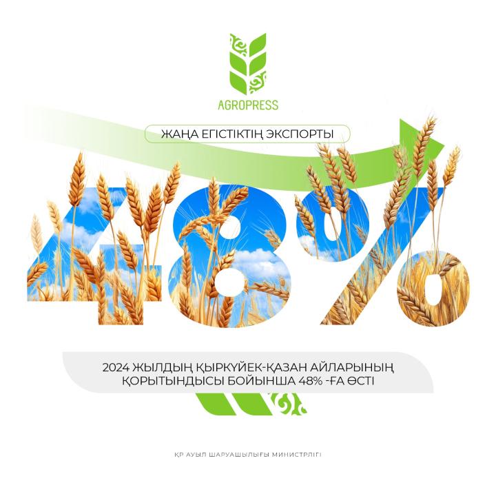 2024 жылдың қыркүйек-қазан айларының қорытындысы бойынша жаңа егістіктің экспорты 48% -ға өсті 16.11.2024