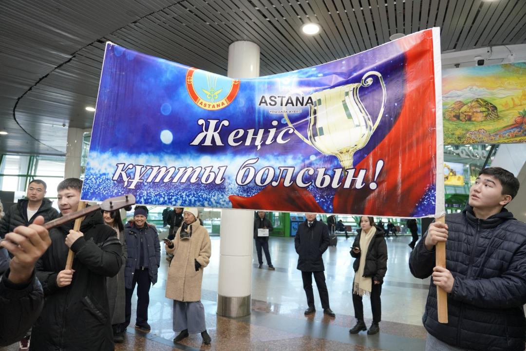 АҚШ-тан жүлдемен оралған боксшы Даниял Райымбековты жанкүйерлер Астана әуежайында қарсы алды 16.11.2024