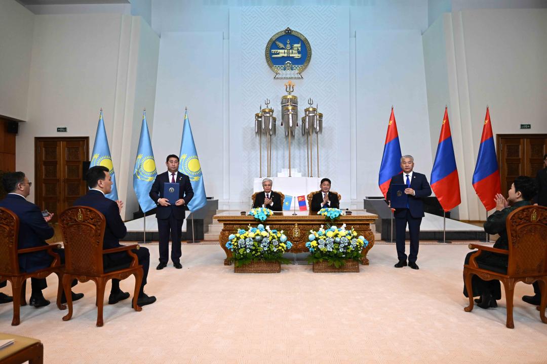 Қасым-Жомарт Тоқаев пен Ухнаагийн Хурэлсух екі ел делегация мүшелерінің қатысуымен кеңейтілген құрамда келіссөз өткізді.Қазақстан Президенті шағын құрамдағы кездесудің қорытындысына жоғары баға беріп, Моңғолиямен мемлекетаралық қарым-қатынасты одан әрі дамытудың басым бағыттарын айқындады.– Ынтымақтастықты жаңа стратегиялық деңгейге көтеру екі елдің мүддесіне сай келеді. Біз моңғол халқына үлкен құрметпен қараймыз және Моңғолияның жетістігіне әрдайым қуанамыз. Қазіргі уақытта Сіздің бастамаңызбен ауқымды саяси-экономикалық және әлеуметтік реформалар қолға алынды. «Vision-2050», «Азық-түлікпен қамтамасыз ету және оның қауіпсіздігі», «Салауатты моңғол ұлты» сияқты маңызды мемлекеттік бағдарламалар жүзеге асырылып жатыр, – деді Мемлекет басшысы.Қасым-Жомарт Тоқаев екі елдің арасында тығыз парламентаралық және үкіметаралық байланыстар қалыптасқанын еске салып, ынтымақтастықты нығайтуға айтарлықтай мүмкіндік бар екеніне назар аударды– Сауда-экономика, ауыл шаруашылығы, көлік-логистика, тау-кен индустриясы, өнеркәсіп, инвестиция, жаңа технологиялар, ғарышты игеру салаларында ықпалдастықты жандандыру қажет. Бүгін қол қойылатын құжаттар саяси және экономикалық алыс-берісті дамытуға тың серпін береді деп сенемін, – деді Президент.Моңғолия Президенті Қазақстанды өз елінің маңызды серіктесі, Шығыс пен Батыс арасындағы сенімді көпір деп атады. Оның айтуынша, Ұлан-Батыр Қазақстанның экономикалық дамудағы тәжірибесін мұқият зерделеуде және сауда, көлік, логистика, ауыл шаруашылығы және ғарыштық зерттеулер салаларындағы екіжақты жобаларды тиімді жүзеге асыруға ерекше көңіл бөлетін болады. Атап айтқанда, Ухнаагийн Хурэлсух Қасым-Жомарт Тоқаевтың екіжақты тауар айналымын 500 миллион долларға дейін ұлғайту туралы ұсынысын қолдады.Келіссөздер соңында мемлекет басшылары стратегиялық әріптестік орнату туралы бірлескен декларацияға қол қойды. Одан кейін қол қойылған құжаттармен алмасу рәсімі өтті.Қазақстан Республикасы Президентінің Моңғолияға мемлекеттік сапары аясында екі ел делегацияларының өкілдері 11 құжатқа қол қойды, оның ішінде Қазақстан Республикасы Ауыл шаруашылығы министрлігі мен Азық-түлік министрлігі арасындағы ынтымақтастық туралы меморандум, Моңғолияның ауыл шаруашылығы және жеңіл өнеркәсібі, Қазақстан Республикасы Ауыл шаруашылығы министрлігінің Ветеринариялық бақылау және қадағалау комитеті мен Моңғолияның Ветеринариялық бас басқармасы арасындағы ветеринариялық қызмет пен карантин саласындағы ынтымақтастық туралы өзара түсіністік туралы меморандум және т.б. Ақпарат көзі : https://www.gov.kz/memleket/entities/moa/press/news/details/873254
