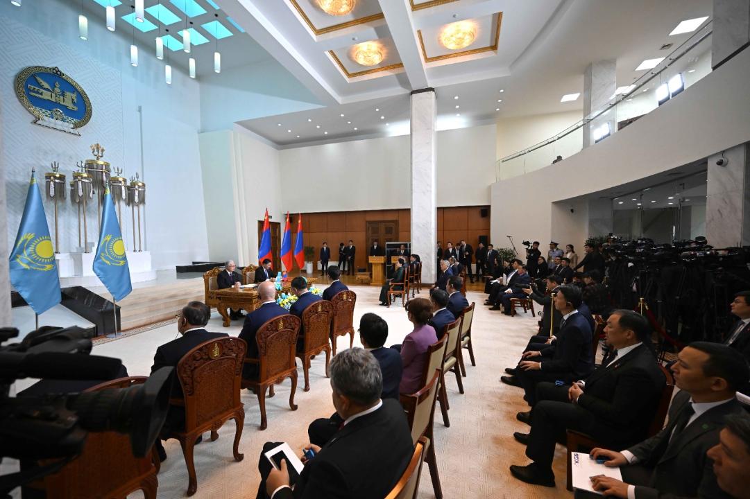 Қазақстан және Моңғолия президенттері келіссөздер қорытындысы бойынша БАҚ өкілдері алдында бірлескен мәлімдеме жасады 16.11.2024