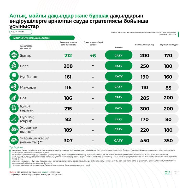 Астық, майлы және бұршақты дақылдар өндірушілеріне сауда стратегиясына қатысты ұсыныстар 13.01.2025 14.01.2025