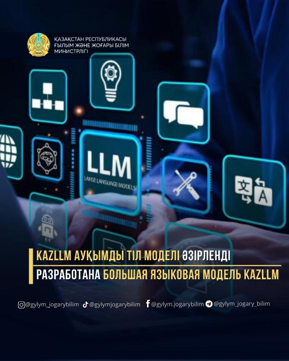 KAZLLM АУҚЫМДЫ ТІЛ МОДЕЛІ ӘЗІРЛЕНДІМемлекет басшысының тапсырмасы аясында қазақ тіліндегі жасанды интеллектті дамытуға бағытталған KazLLM ауқымды тіл моделі әзірленді.Аталған тапсырманы жүзеге асыру аясында Қазақстан Республикасы Ғылым және жоғары білім министрлігі Nazarbayev University жанындағы Ақылды жүйелер мен жасанды интеллект институты (ISSAI NU), ғылыми институттар мен жоғары оқу орындарын тарта отырып KazLLM ұлттық тіл моделіне қажетті қазақ тілінің корпусын қамтамасыз ету жұмысын жүргізді.Аталған шара қазақ тіліндегі мәтіндік ақпаратты өңдеу, аудару, талдау және қазақ тілін заманауи технологияларға кіріктіруге қажетті тиімді шешімдер жасауға бағытталған. Жаһандану және елдің мәдени бірегейлігін сақтау жағдайында жобаның маңыздылығы тіпті артып отыр.KazLLM-ге қажетті қазақ тіліндегі корпусты әзірлеуге атсалысқан еліміздің 26 жетекші институттарының, жоғары оқу орындарының 140-тан аса ғалымдары мен қызметкерлері экономика, қаржыландыру, математика, тарих, биология, химия, медицина, технология және тағы да басқа 115 сала бойынша үлкен көлемдегі деректерді дайындаумен айналысты. Мәселен әл-Фараби атындағы Қазақ ұлттық университеті философия, этика, PR, астрономия, астрофизика, ақпараттық технология салалары бойынша деректерді дайындаумен, Математика және математикалық модельдеу институты математика саласы бойынша, Ш.Уәлиханов атындағы Тарих және этнология институты тарих саласы бойынша, медициналық университеттер медицина саласы бойынша деректерді дайындаумен айналысты. Ғылым және жоғары білім мекемелерімен бұл ынтымақтастық модельдің сапалы әрі тиімді әзірленуін қамтамасыз ететін қазақ тіліндегі бірегей контенттің құрылуына ықпал етті.Бүгінгі күні KazLLM-нің ашық бастапқы коды бар нұсқасы https://huggingface.co/issai платформасында қолжетімді.Цифрлық инфрақұрылымның маңызды бөлігі болып табылатын аталған модель коммерциялық емес ғылыми және академиялық мақсаттарда, сондай-ақ чат-боттар, виртуалды көмекшілер, Google Translate-ке ұқсас автоматты аудармашыларды әзірлеуде қолданылатын болады.Ақпарат көзі : https://www.gov.kz/memleket/entities/sci/press/news/details/937206