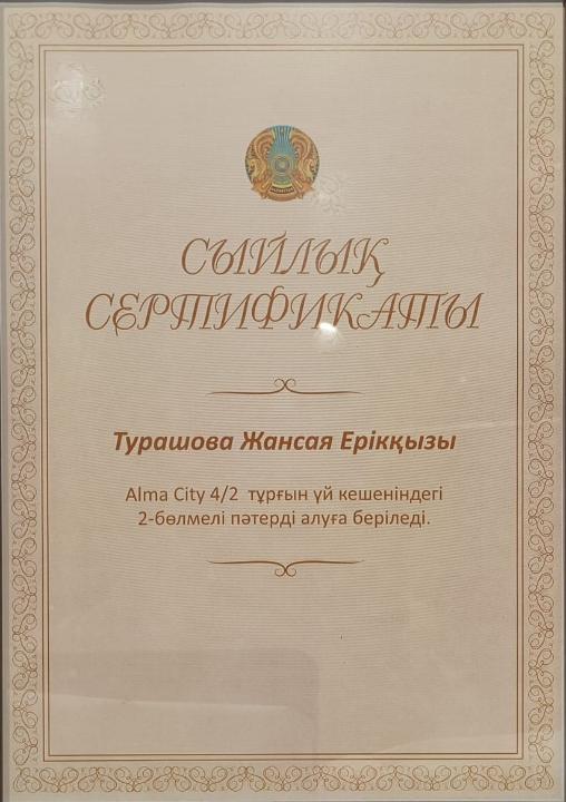 Мемлекет басшысының тапсырмасымен ғалымдарға қолдау көрсету, олардың әлеуметтік мәртебесін арттыру және ғылымға жас кадрлардың келуін ынталандыру аясында "Сейсмологиялық бақылаулар мен зерттеулердің ұлттық ғылыми орталығы" ЖШС ғылыми хатшысы Жансая Ерікқызы Тұрашеваға Алматы қаласында 2 бөлмелі пәтер алуға сертификат берілді. Жансая Ерікқызы "Инженерлік геология"мамандығы бойынша постдокторант. Ұлттық ғылыми орталықта 15 жылдан астам жұмыс істейді. Жұмыс барысында "Студент және ғылым: Болашаққа бағдар" республикалық ғылыми конференциясында бірінші орынға ие болып, диплом алды. Ол "Жас ғалымдардың ғылыми жетістіктері" көрмесі грантының иегері, "Тәуекелді бағалау" ұлттық тренингінің және "Сейсмология, сейсмикалық деректерді талдау, тәуекелді бағалау және тәуекелді азайту"курсы халықаралық тренингінің қатысушысы болып табылады.Ақпарат көзі : https://www.gov.kz/memleket/entities/emer/press/news/details/934242