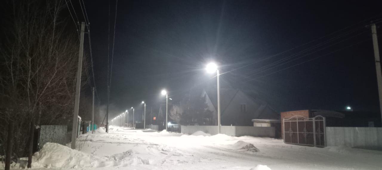 Ауылдағы К. Ахметов көшесінің 1600 метр жеріне заманауи шамдар орнатылып, іске қосылды.