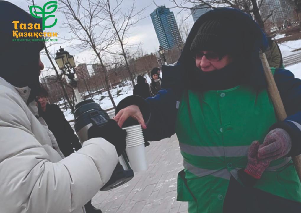 Қыстыгүні қаланы күн сайын қар мен мұздан тазартып жүрген коммуналдық қызметкерлерге қолдау көрсету үшін Астананың танымал спортшылары таңертең ерте Емен аллеясына жиналды. Акцияны ұйымдастырушылар қызметкерлерге ыстық шай мен бауырсақ ұсынып, қаланың тазалығына қамқорлық танытқандары үшін алғыстарын білдірді.