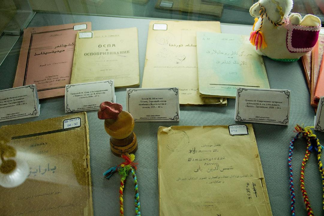 Экспонаттар арасында Ресей мен Татарстан тарихына қатысты басылымдар, ғылыми және медициналық кітаптар, сонымен қатар сол кезде жарық көрген көркем әдебиеттер бар. Араб және латын графикасында басылған бұл кітаптар мәдени алмасу мен тарихи мұраның бірегей дәлелі.