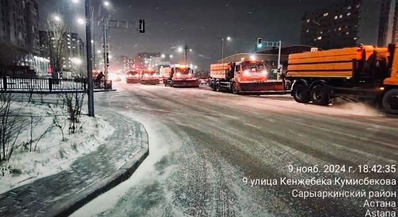 600-ден аса арнайы техника мен 300-ге жуық жол жұмысшысы түнгі ауысымда көшелерді қардан тазартуға шықты.
