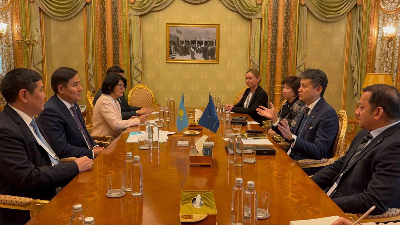 Үлгілер бойынша заңдар туралы шарт (ҮЗШ) жасасу жөніндегі дипломатиялық конференция аясында Қазақстан Республикасының Әділет министрі Азамат Есқараев Дүниежүзілік зияткерлік меншік ұйымының (ДЗМҰ) Бас директоры Дарен Тангпен кездесті.