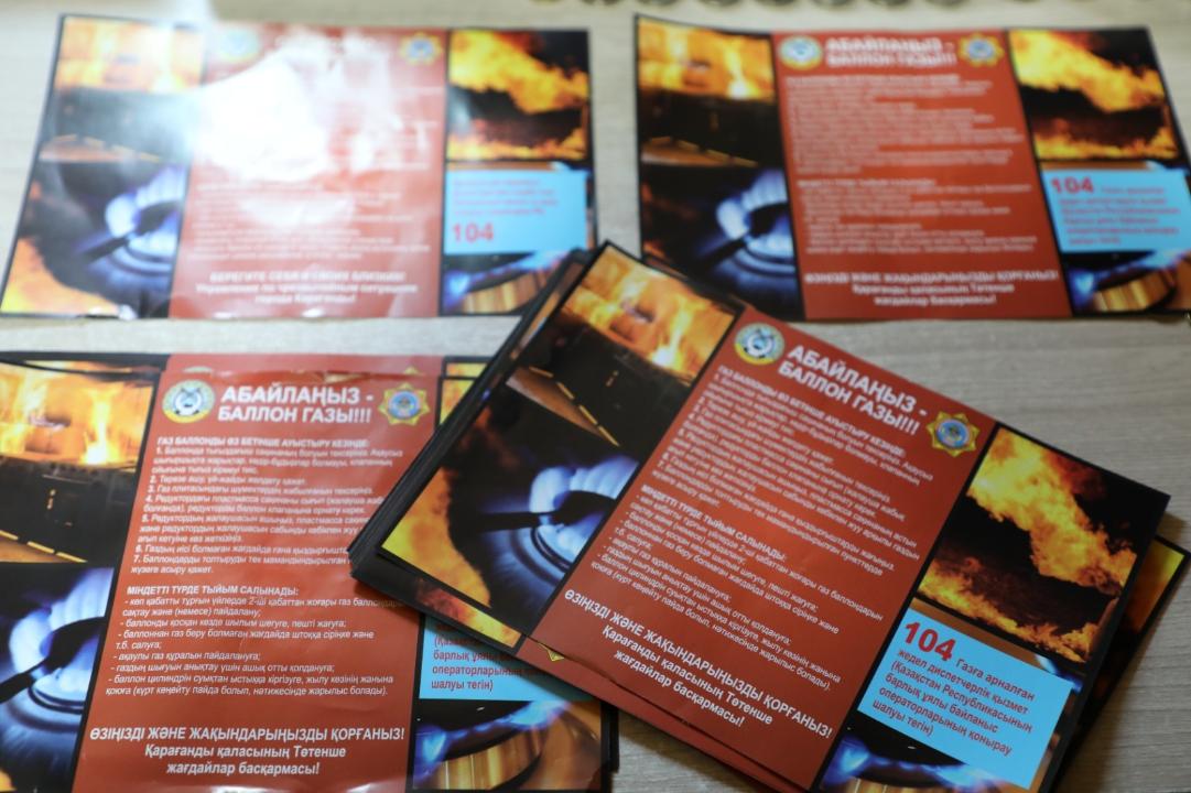 13 қарашада Қарағанды облысының аумағында тұрмыстық газ баллондарын пайдалану қауіпсіздігін қамтамасыз ету мақсатында Төтенше жағдайлар департаментінің және оның аумақтық бөлімшелерінің қызметкерлері автогаз құю станциялары мен газ толтыру станцияларында рейдтік үгіт-профилактикалық іс-шаралар өткізді.