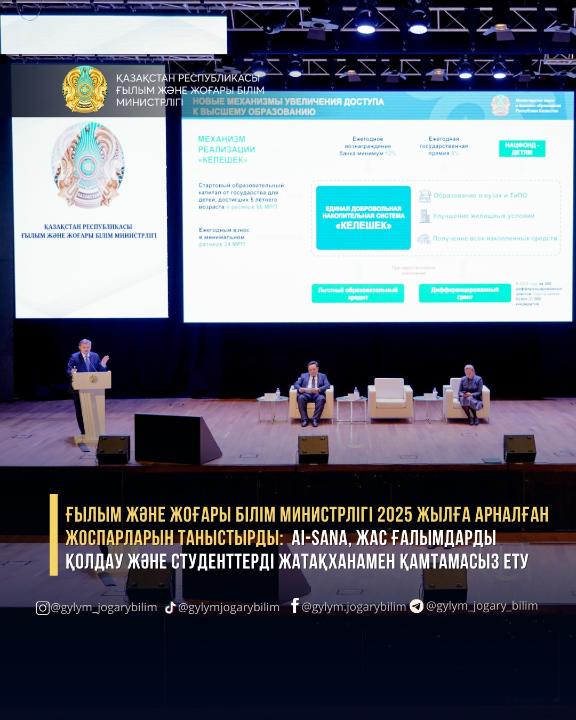 Ғылым және жоғары білім министрлігі 2025 жылға арналған жоспарларын таныстырды: AI-Sana, жас ғалымдарды қолдау және студенттерді жатақханамен қамтамасыз ету