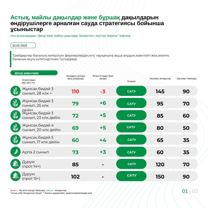 Астық, майлы және бұршақты дақылдар өндірушілеріне сауда стратегиясына қатысты ұсыныстар 10.02.2025