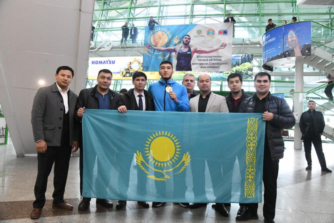 Күрес түрлерінен 23-29 қазан күндері Албания елінің астанасы Тиранада өткен 23 жасқа дейінгі әлем чемпионатында бақ сынаған Ризабек Айтмұханды жанкүйерлер мен күрес жанашырлары әуежайдан зор қошеметпен қарсы алды, деп хабарлайды елорда әкімдігінің ресми сайты.