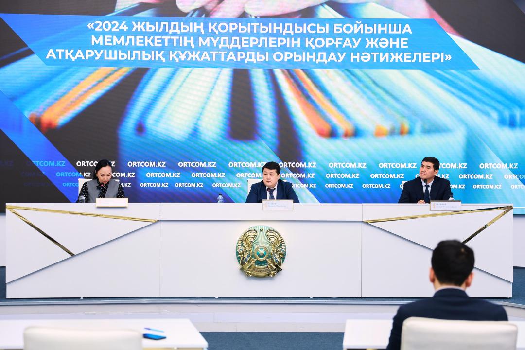 Брифингте Әділет вице-министрі 2024 жылдың қорытындысы бойынша мемлекеттің мүддерлерін қорғау және атқарушылық құжаттарды орындау нәтижелері бойынша журналистердің сауалдарына жауап берді.