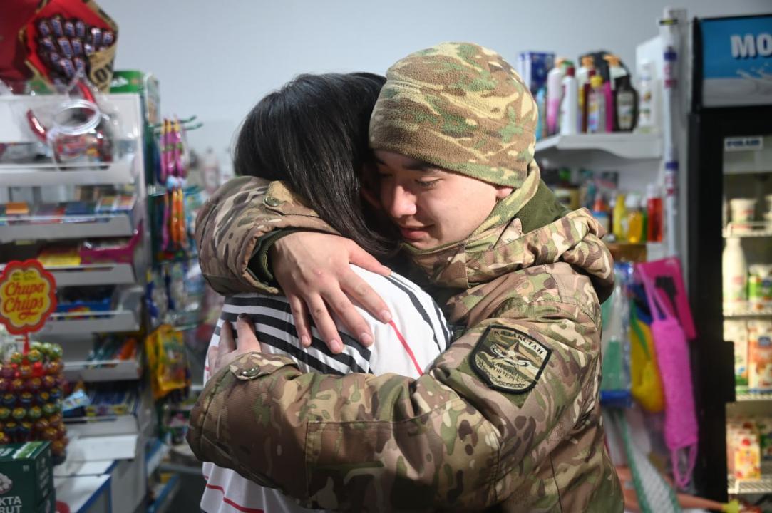 Бұл сарбазға да, оның отбасына да нағыз тосын сый болды. Қолына гүл ұстаған жауынгер анасы және туыстарымен қауышқанда бәрі қатты таң қалды.