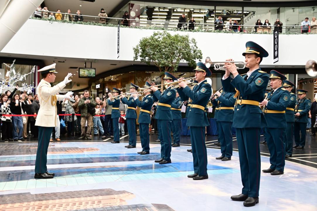 ҚР Қарулы Күштері Ұлттық әскери-патриоттық орталығы (ҰӘПО) Орталық әскери оркестрінің музыканттары қала тұрғындарына арнап классикалық және заманауи туындыларды орындады. Оркестрдің орындауындағы таныс әскери және патриоттық, марштық және джаз әуендері көрермендердің қошеметіне бөленді.
