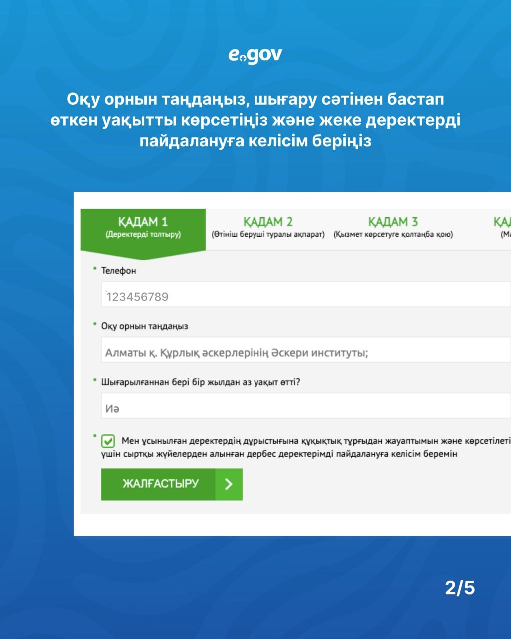 Енді қызметке өтінім онлайн түрде беріледі, ал қажетті құжаттардың басым бөлігі мемлекеттік дерекқорлардан автоматты түрде жүктеледі. Өтініш беру бойынша толық нұсқаулықты карусельден таба аласыз.