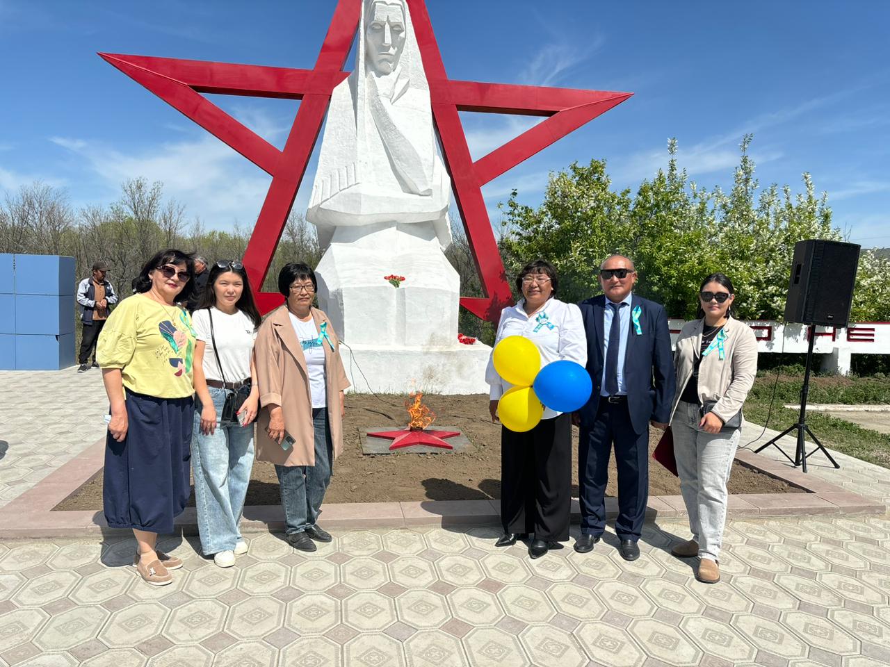 Үлкен Нарын ауылының орталық саябағында Отан үшін күрескен батырларымызды құрметтеп, еске алып, гүл шоқтарын қою рәсімін өткіздік.