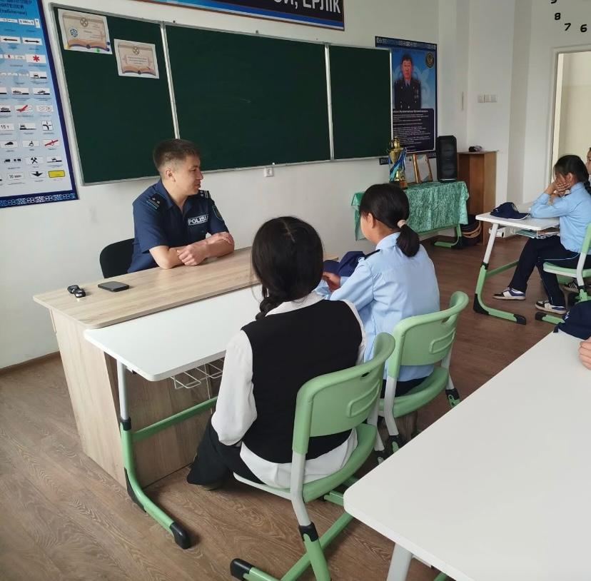 «Жас сақшы» полиция сыныбы оқушыларының полиция полковнигімен кездесуі.