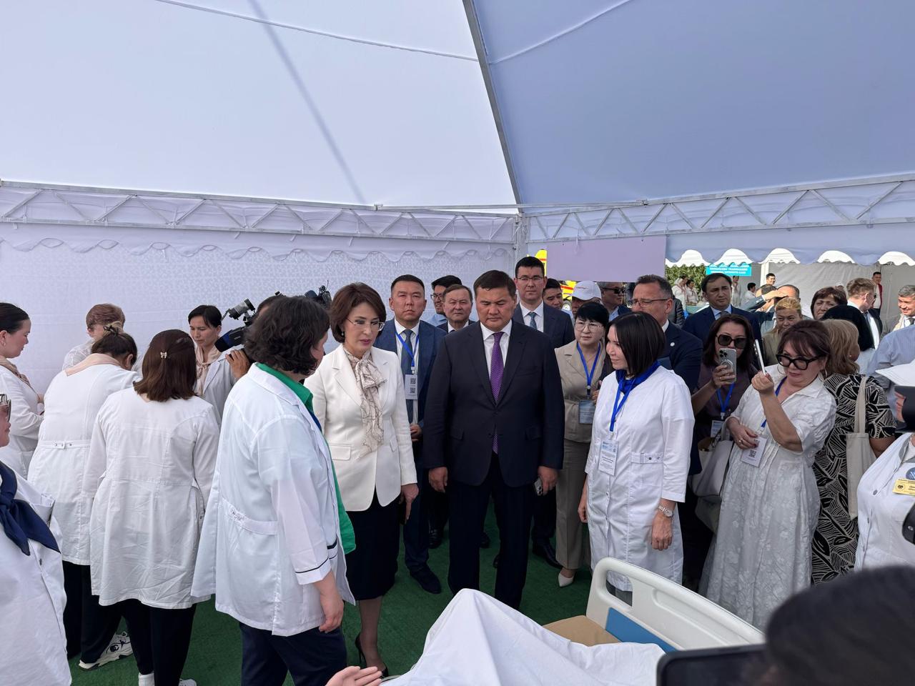 Іссапар аясында Денсаулық сақтау министрлігінің делегациясы, республикалық медициналық ұйымдар мен өңірлердің денсаулық сақтау басқармасы басшылары облыс орталығы мен аудандардағы медицина ұйымдарының жұмысымен танысып, тәжірибе алмасуда.