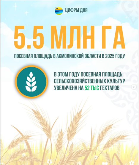 Биыл Ақмола облысындағы егістік алқаптарының жалпы ауданы 5.5 млн гектарды құрап, өткен жылғыдан 52 мың гектарға артты.
