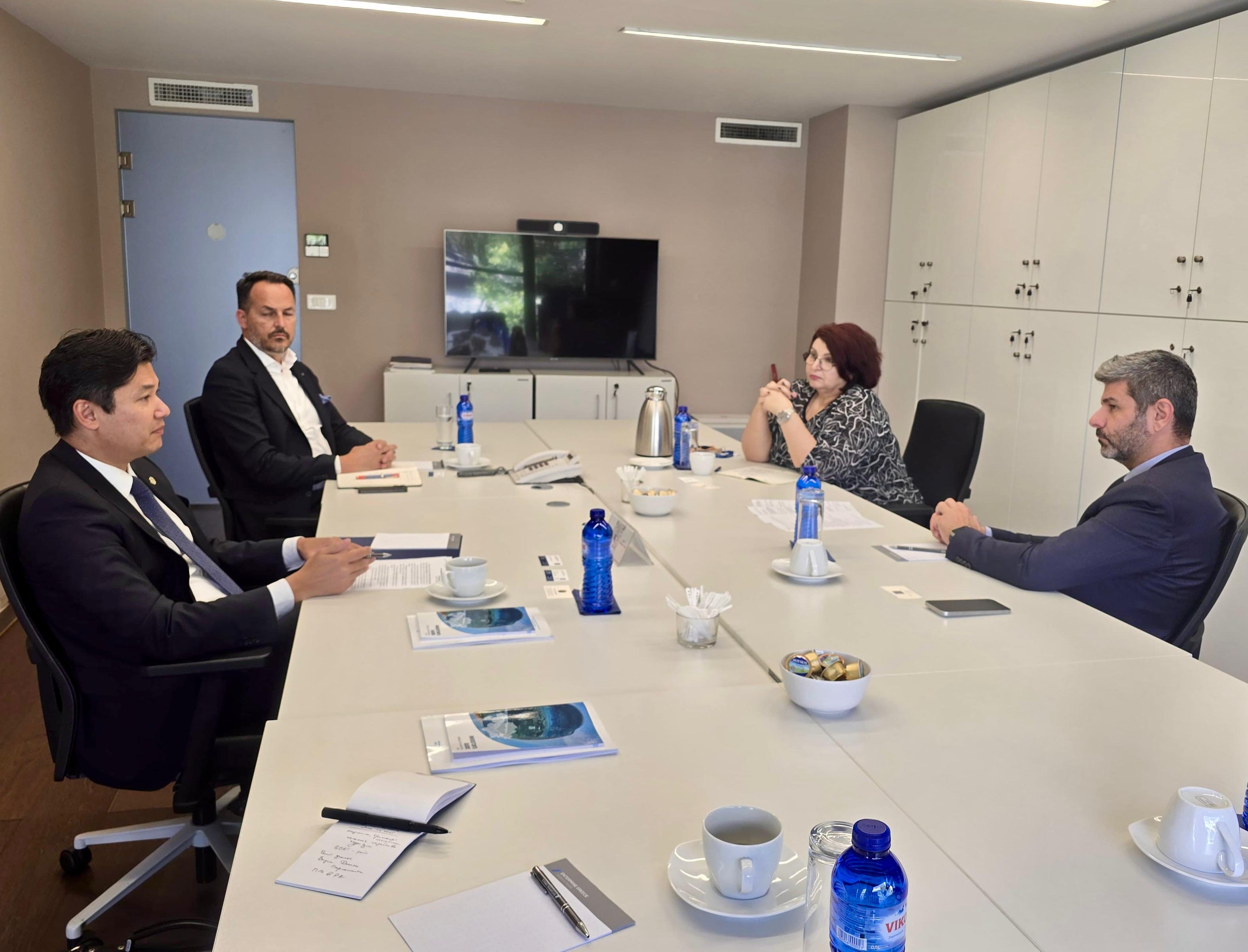 Афина, 2025 жылғы 11 маусым – Грек Республикасының инвестицияларды және экспортты қолдау жөніндегі ұлттық агенттігі «Enterprise Greece» штаб-пәтерінде Қазақстанның Грекиядағы Елшісі Тимур Сұлтанғожин Агенттіктің Бас атқарушы директоры Маринос Яннопулоспен кездесті.