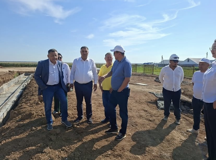 Аудандық және облыстық мәслихат депутаттары аудан әкімінің орынбасары М. Нурмаковпен бірге Ақсай қаласындағы 13 шағын ауданда салынып жатқан 900 орындық мектеп құрылысының жұмыс барысын қарап шықты.