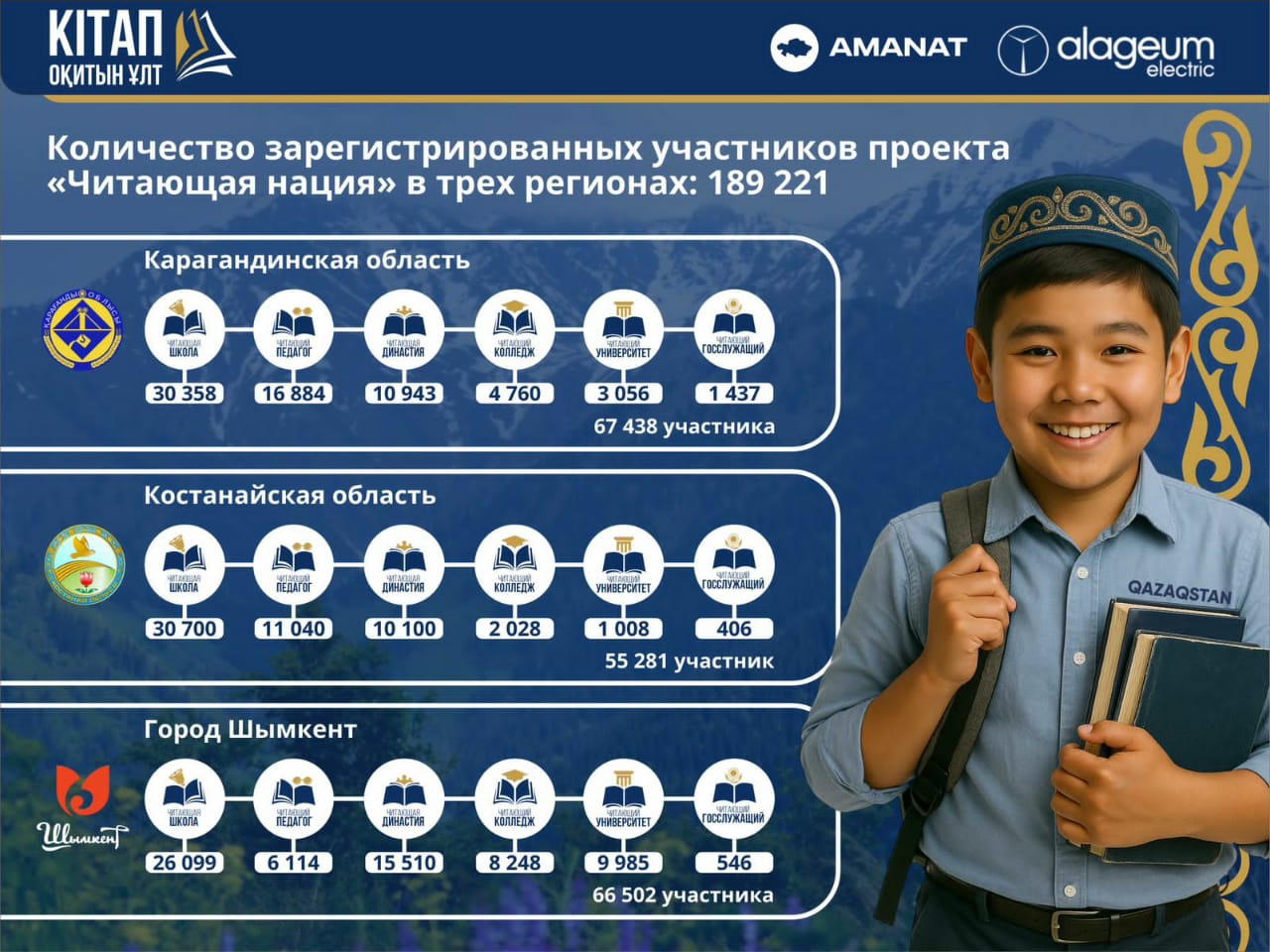 2025 жылдың қыркүйегінде Қарағанды, Қостанай облыстары мен Шымкент қаласында «Кітап оқитын ұлт» жобасының бірінші кезеңі — Қазақстанда тұрақты оқу мәдениетін қалыптастыруға бағытталған ауқымды интеллектуалды және білім беру бастамасы сәтті аяқталды.